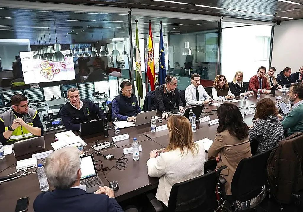 El presidente de la Junta, Juanma Moreno, que presidió este martes una reunión del Comité Asesor del Plan de Emergencias, advirtió de que la situación meteorológica a la que se enfrenta Andalucía es compleja y que el riesgo de inundación en máximo en gran parte del territorio de la comunidad. «Cualquier zona inundada en los últimos 50 años puede volver a inundarse ahora», señaló Moreno tras la reunión, en la que participaron representantes de todas las instituciones.