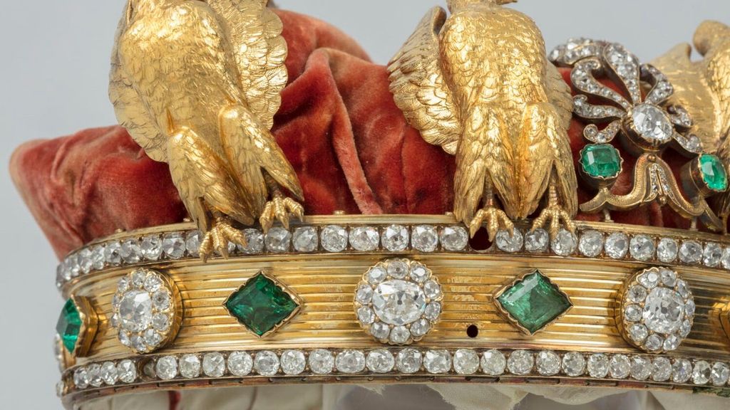 Napoleón III encargó la corona de la emperatriz de cara a la Exposición Universal de 1855 en París. Nacida en Granada, Eugenia de Montijo era la hermana de la duquesa de Alba y se convirtió en emperatriz de Francia gracias a su boda con el emperador dos años antes, en 1853. Esta joya que le ofreció está compuesta por 1.354 diamantes y 56 esmeraldas. El Louvre la adquirió en 1988 y se trata de una de las pocas coronas de reinas o emperatrices francesas que se conservan en el país vecino.