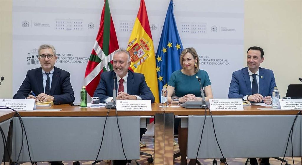 El acuerdo se ha rubricado en el Ministerio de Política Territorial y Memoria Democrática tras una reunión mantenida a primera hora de la mañana entre el ministro del ramo, Ángel Víctor Torres y la propia Ubarretxena, en la que también han participado el Vicelehendakari segundo y consejero de Economía, Trabajo y Empleo, Mikel Torres, el consejero de Hacienda y Finanzas, Noel d'Anjou, y el consejero de Seguridad, Bingen Zupiria.