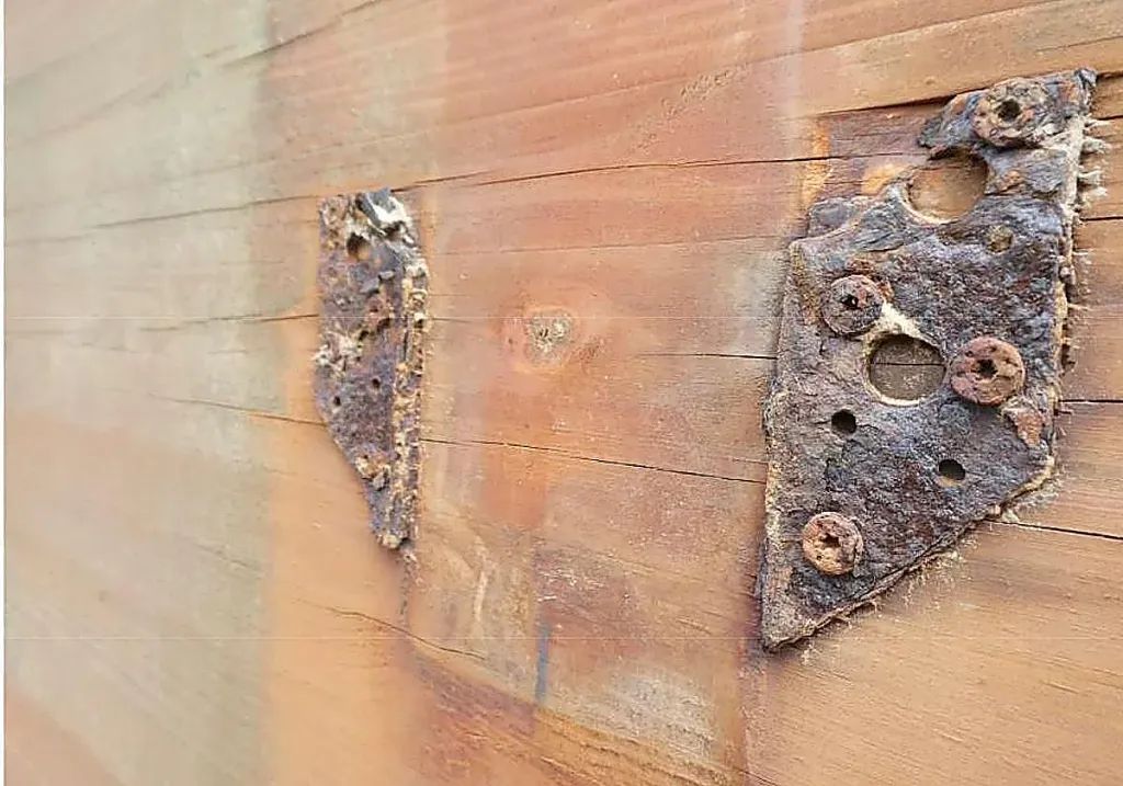 Aunque no ha podido determinar la calidad del material empleado (por su «pésimo estado»), ni el espesor de la chapa, lo que sí ha certificado es que «no se trata de acero inoxidable», que es el material que debería haberse empleado, en su opinión, por la cercanía de la infraestructura al mar. «La corrosión de los herrajes de las vigas secundarias son la causa del accidente. Dado el muy avanzado estado de la corrosión, estos herrajes ya llevaban bastante tiempo en mal estado», manifiesta.