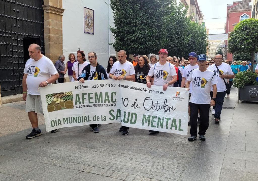 Fue una jornada que tuvo su carácter reivindicativo, donde la Asociación de Familias y Personas con Salud Mental de Andújar y Comarca, Afemac, leyó un manifiesto, y se sumó a la marcha que se organizó desde la Plaza de España y hasta la ribera del Guadalquivir, enmarcada dentro de las actividades del Mes del Mayor que se desarrollan este mes de octubre.