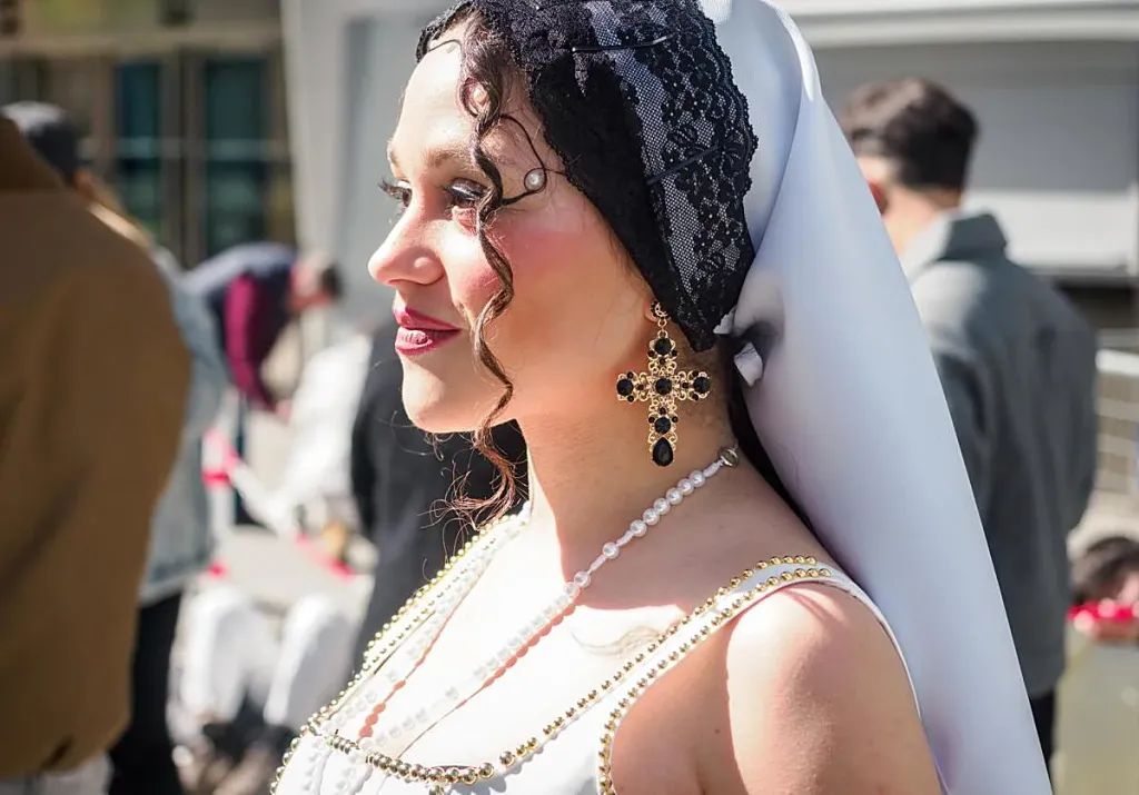 Con el blanco como gran protagonista, algunos lucían velos ligeros, tops de rejilla, collares con perlas infinitas, largas faldas y corsés detallados, en una mezcla de referencias religiosas y estética pop, mientras otros improvisaban sus looks en la propia fila, maquillándose y ultimando detalles a pocos metros de las puertas.