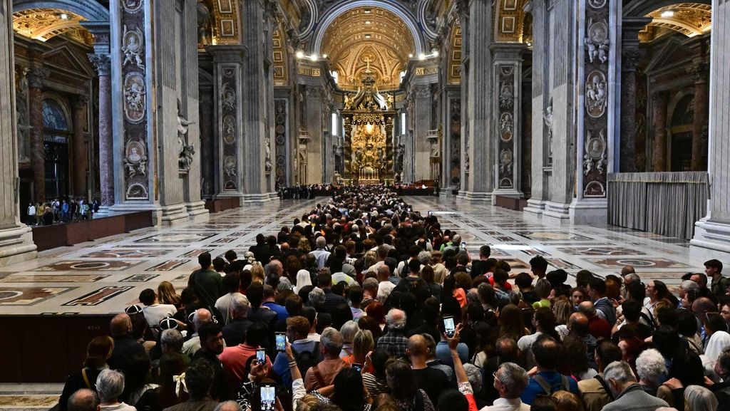 A quienes se ponen en fila se les advierte: “será largo, señora”, dice un miembro de la protección civil a una joven francesa con su hijo pequeño en brazos. Pero nadie parece desanimarse. Las colas, cada vez más largas, han obligado al Vaticano a extender el horario de apertura de la basílica de San Pedro más allá de la medianoche anunciada.
