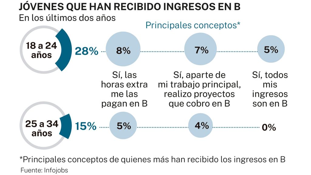 4Foto© larazon.esLa precariedad laboral y la asfixia fiscal llevan a la mitad de los jóvenes españoles a querer cobrar en B