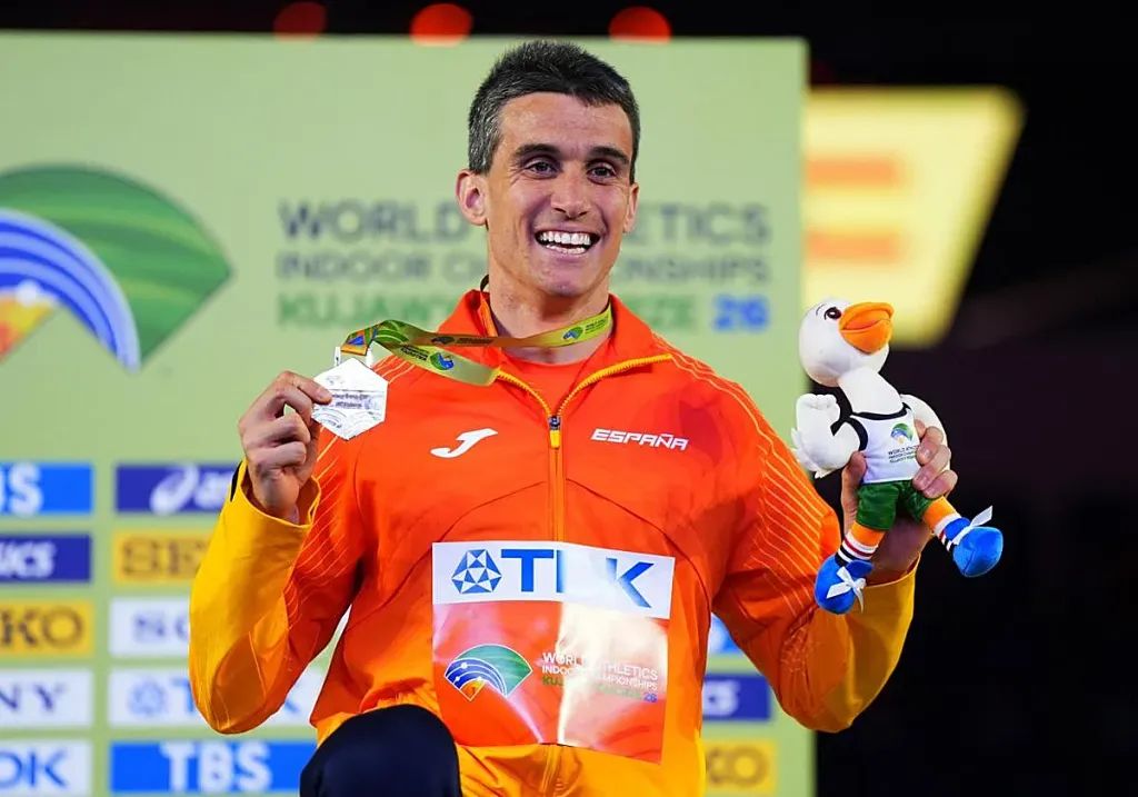 El español Mariano García (Fuente Álamo, Murcia, 1997) conquistó el oro en el Mundial indoor de Polonia en los 1.500 metros y lo celebró por todo lo alto, como una moto. «Ha sido una locura», confiesa el atleta murciano. Y no es para menos, porque este título le ha convertido en el primer atleta en ganar el oro en el 1.500 y en el 800.