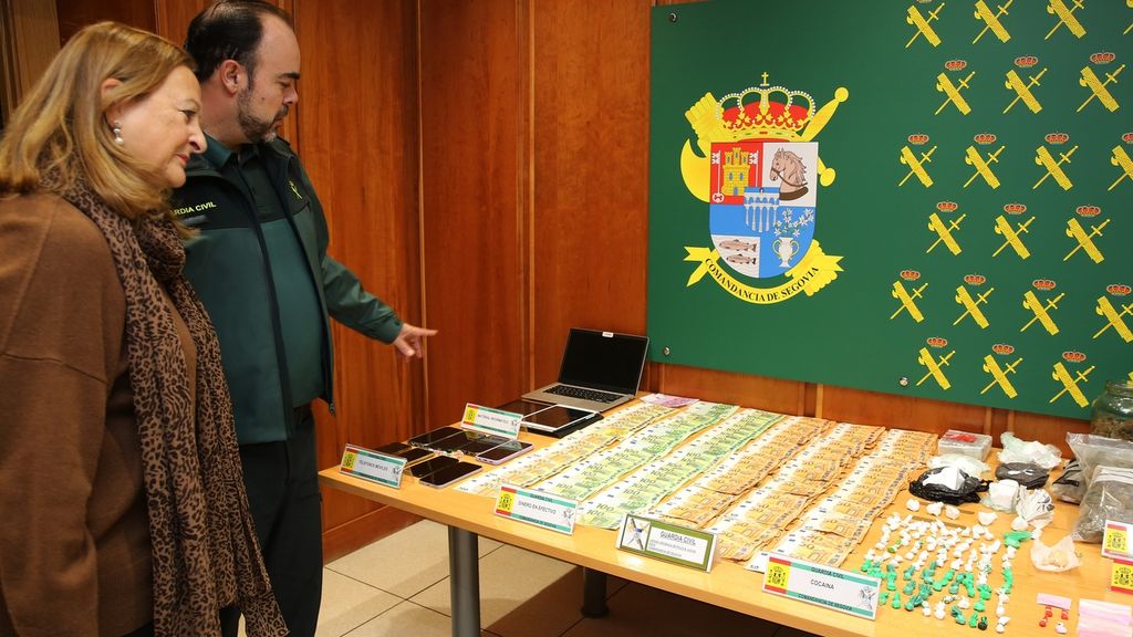 Agentes de la Guardia Civil de Segovia detuvieron a ocho personas en siete registros domiciliaron en las localidades de Ituero y Lama y Villacastín, en la provincia de Segovia, y en Madrid, . También se incautaron 8,2 gramos de cocaína rusa, 9,69 de anfetamina y 5,16 de metanfetamina, así como anotaciones, básculas y 24.000 euros en efectivo, tal y como informó la subdelegada del Gobierno en Segovia, Marian Rueda, acompañada del teniente coronel de la Guardia Civil, Benito Donate.