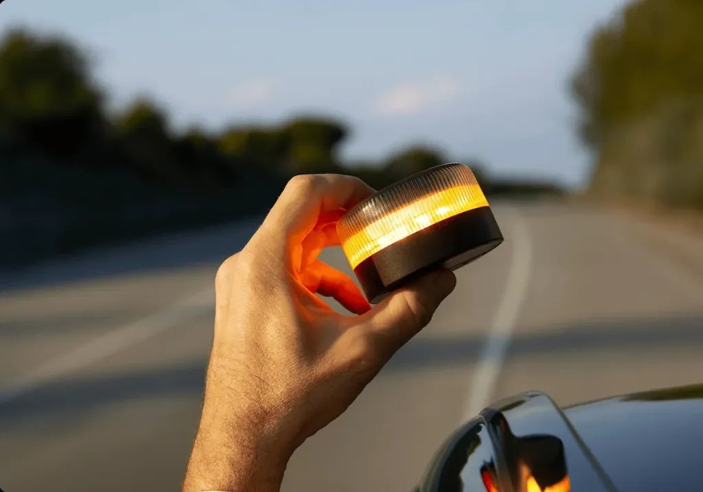 La baliza V16 conectada es una pequeña luz intermitente de color ámbar que se coloca en el techo del vehículo cuando este queda inmovilizado por avería o accidente. Su principal ventaja frente a los triángulos es que permite señalizar sin salir del coche, evitando así que el conductor tenga que caminar por la calzada, uno de los momentos de mayor riesgo de atropello.